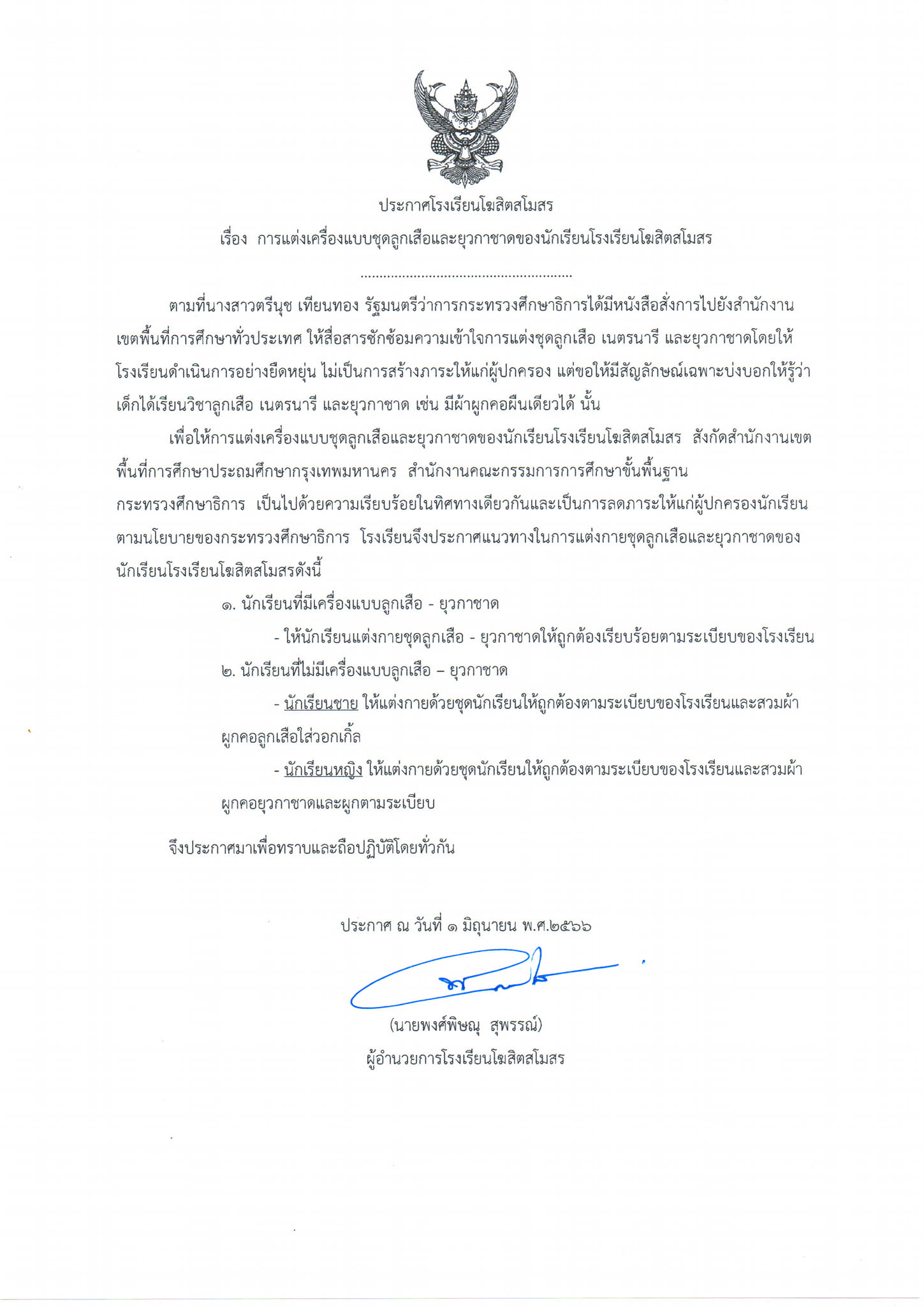 เรื่อง การแต่งเครื่องแบบชุดลูกเสือและยุวกาชาดของนักเรียนโรงเรียนโฆสิตสโมสร