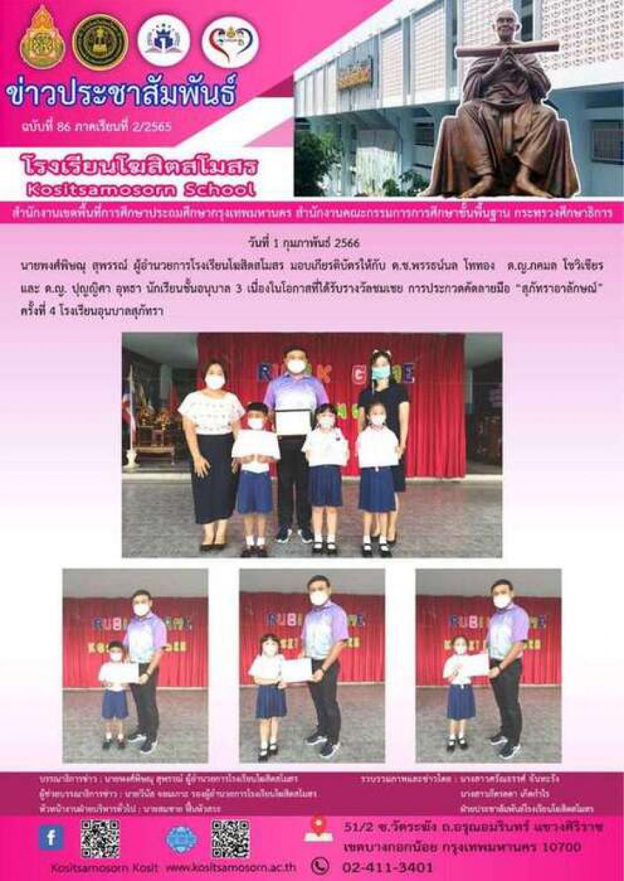 ผู้อำนวยการมอบเกียรติบัตรให้กับนักเรียนปฐมวัยเข้าร่วมการประกวดคัดลายมือ S:0