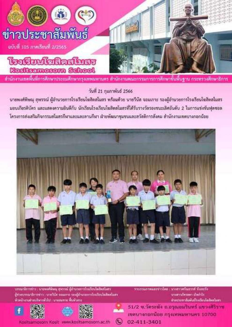 ผู้อำนวยการมอบเกียรติบัตรให้กับนักเรียนเข้าร่วมแข่งขันฟุตซอล รางวัลรองชนะเลิศอันดับ 2 S:0