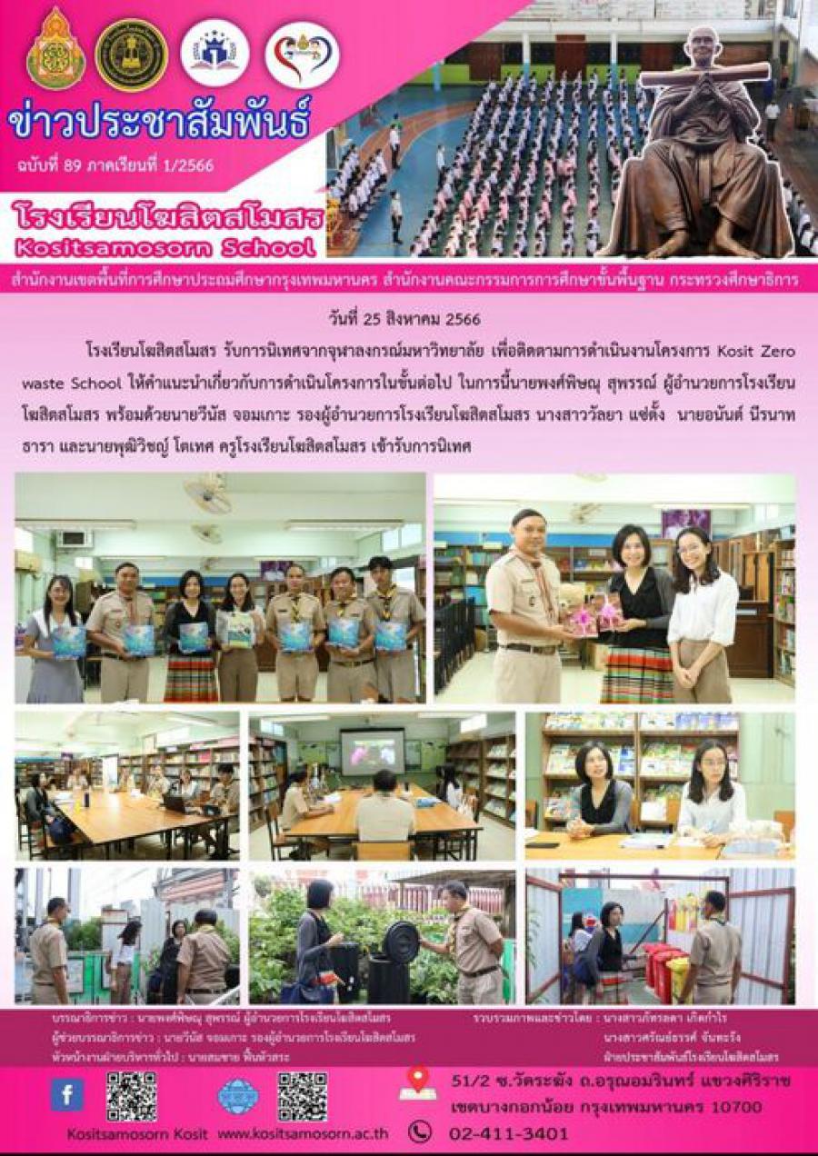 โรงเรียนโฆสิตสโมสร รับการนิเทศจากจุฬาลงกรณ์มหาวิทยาลัย เพื่อติดตามการดำเนินงานโครงการ Kosit Zero waste School ให้คำแนะนำเกี่ยวกับการดำเนินโครงการในขั้นต่อไป S:0